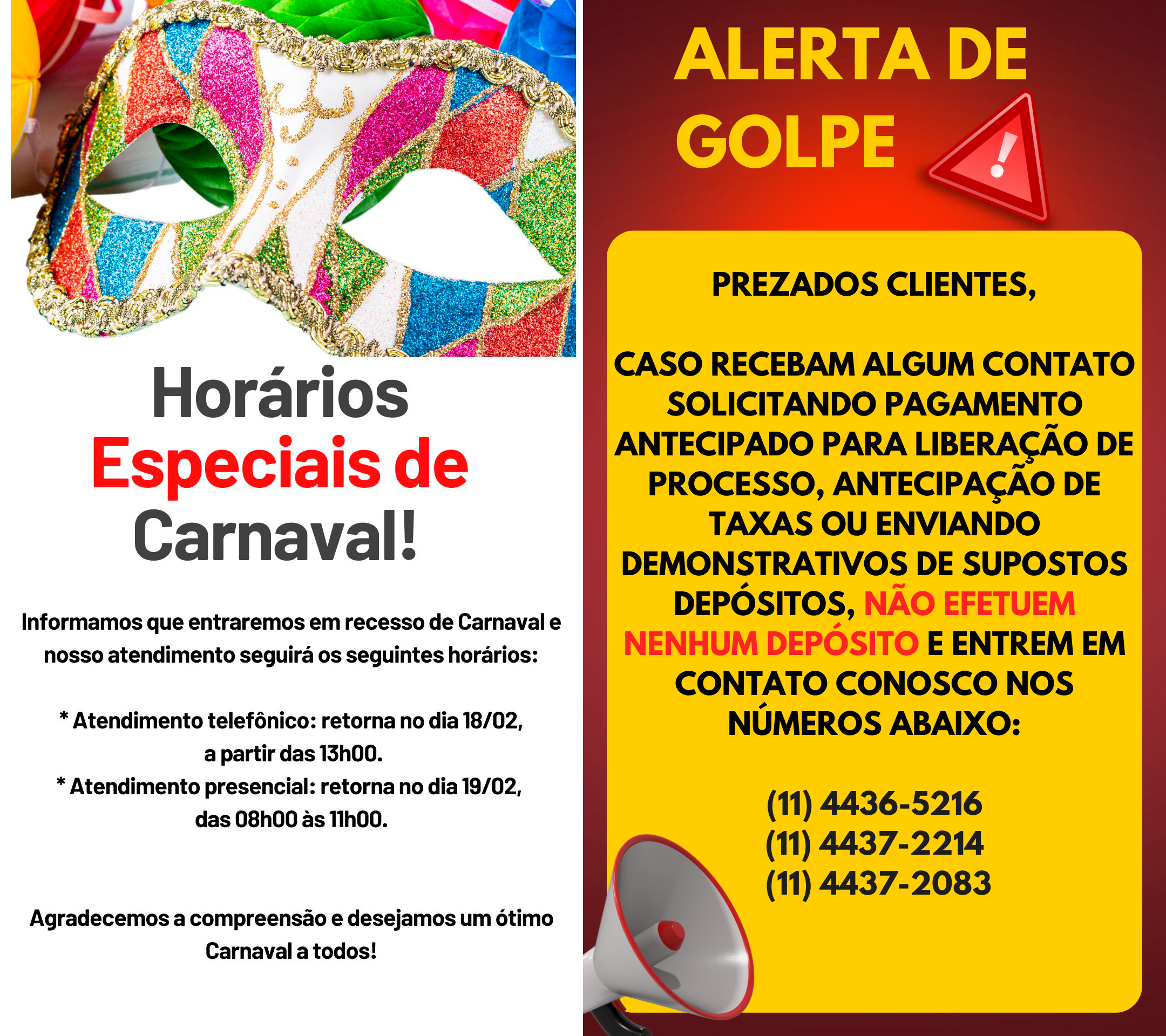 Atendimento Telefônico, pelos telefones (11) 4436-5216, (11) 4436-8650